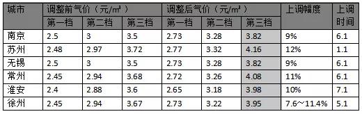 而除了杭州外,长三角的其他城市天然气价格也非常高,例如上海,第三阶梯的价格也达到了4.2元/m³。江苏地区的气价相对要便宜一些, 但在今年上半年,几乎全省范围都经历了一次大调整,涨幅都在10%左右,目前第三阶梯气价也基本在4元/m³左右。